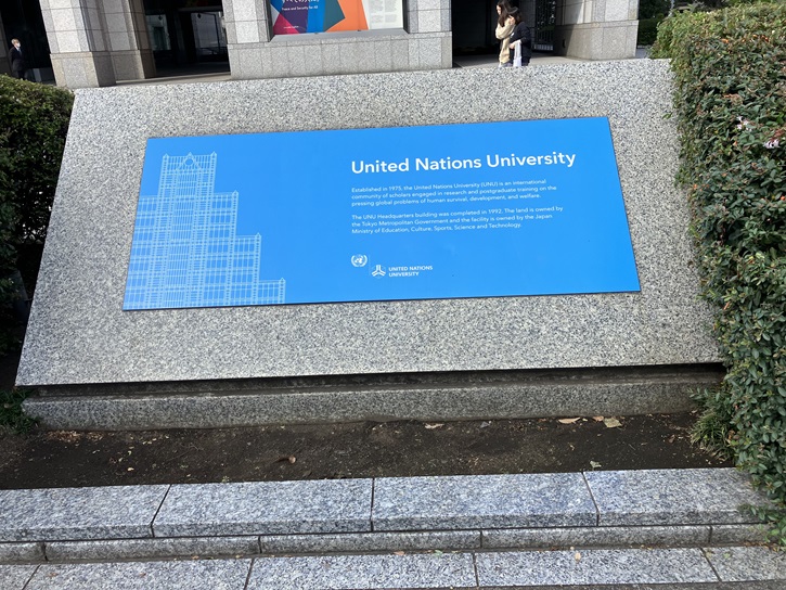 国連大学は1969年に当時の国際連合事務総長ウ・タントが構想を提案し、開発途上国を中心に支持を受け、1973年に国際連合大学憲章が国際連合総会で採択されて設立されました。青山に本部が置かれ、国連およびその加盟国が関心を寄せる緊急性の高い地球規模課題の解決に取り組むため、共同研究・教育・情報の普及・政策提言等を通じて寄与することを使命としています。国連システムおよび国連加盟国のシンクタンクとしての機能を持っています。