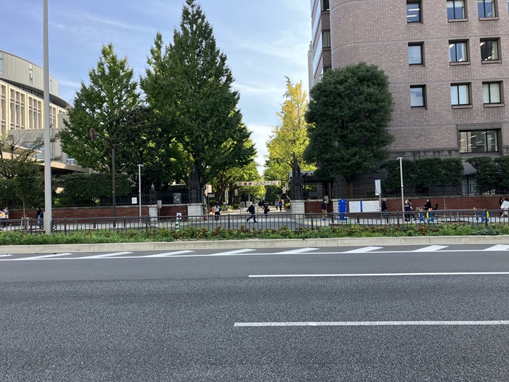 青山通りに面して、青山学院大学の正門があります。青山学院大学は、米国メソジスト監督教会から派遣された宣教師たちが設立した3つの学校を母体とするキリスト教主義学校(ミッションスクール)です。そのため、正門の横の一段高い台の上には、メソジスト運動の創始者であるジョン・ウェスレーの銅像が立っています。「メソジスト運動」とは、日課を区切った規則正しい生活方法(メソッド)を重んじることから「几帳面屋」(メソジスト)とあだ名されたイギリス国教会の流れを汲むキリスト教の活動です。