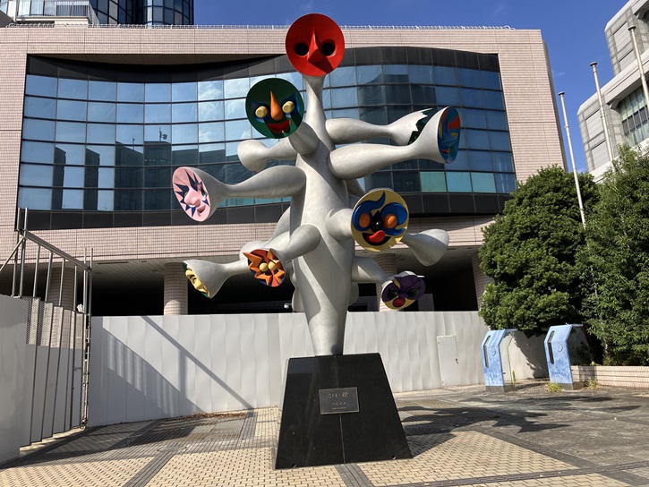 こどもの城は、青山通り沿いの都バス車庫(旧都電青山車庫)跡に建設された施設でした。昭和五十四年(1979年)、国際児童年を記念して厚生省が構想を作成し、昭和六十年(1985年)に新生児から高校生までの子どもたちの福祉と文化活動の拠点を目指し開館しました。建物の正面には岡本太郎作のシンボルモニュメント「こどもの樹」を設置しました。しかし、建物の耐震化の費用や子供を取り巻く社会情勢の変化などの諸事情により平成二十七年(2015年)2月1日に閉館し、現在は建物の周囲は工事用の塀で囲まれています。ですが、岡本太郎作の「こどもの樹」は今でも囲いの外にあって自由に見ることができます。このモニュメントは今後どのように処遇されるのでしょうか?