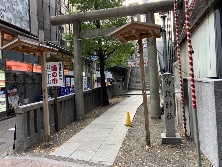 恵比寿駅西口前の広場南側から山手線の線路沿いに南方向に坂が上がっています。いなり坂は長さが約120mほどのかなり急な坂です。坂名は、坂の中ほどに福徳稲荷社が鎮座していたことに因んでいます。福徳稲荷社は新しく建てられた飲食店のビルの屋上に奉遷されたとのことですが、地上からは見えませんでした。