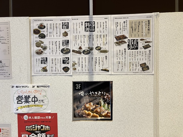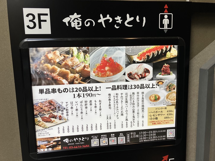 同じビルの3階に、俺のイタリアン渋谷店と同じ日の2023年9月10日にオープンした俺のやきとり渋谷店も入っています。