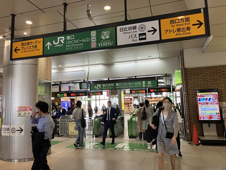 今日は恵比寿スカイウォークを通って、恵比寿駅東口から帰宅します。次に行く俺のフレンチは大手町にあるのですが、恵比寿からどうやって行くのかな?