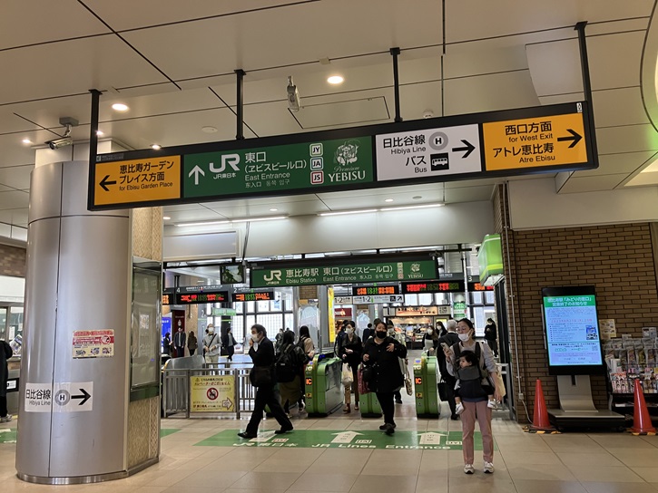恵比寿駅東口から恵比寿通りを東方向に進みます。渋谷区住居表示街区案内図によりますと、恵比寿通りの道路名は、恵比寿駅へ通じる通りということに由来するようです。