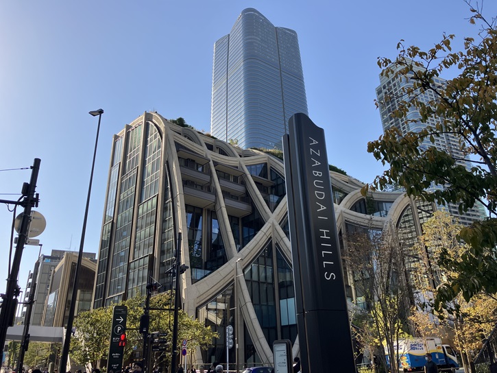 30年の歳月をかけて取り組んできた都市再生事業の「麻布台ヒルズ」は、偶然通りかかった本日(2023年11月24日)開業しました。中心となる麻布台ヒルズ森JPタワーは、高さ325m・64階建て・延床面積約46万uで、大阪のあべのハルカスを抜いて日本一の高さとなります。ガウディの作品を想起させる曲がりくねった建物の地下には広大な空間が広がっていて、有名レストランが多数出店しています。オープン初日とあって、お店の前には長蛇の列ができていました。