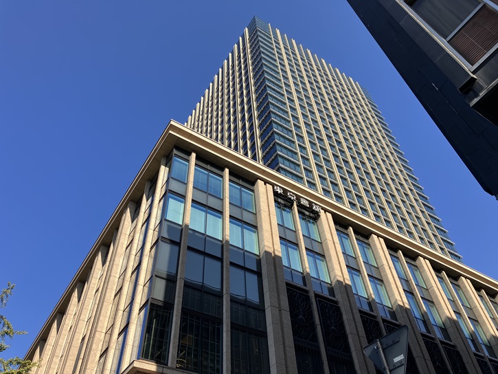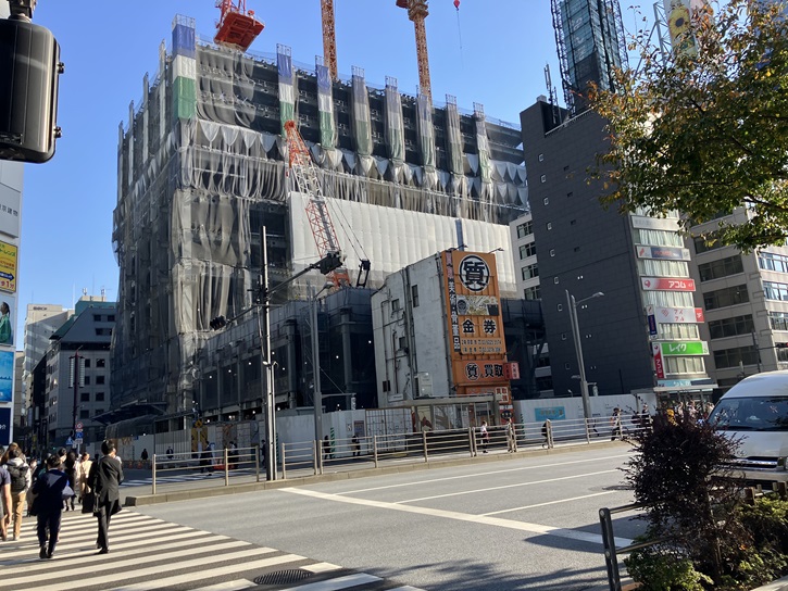 永代通りに面した呉服橋交差点の角地で「TOKYO TORCH」の工事が進んでいます。既に2021年には高さ212mの「常盤橋タワー」が開業し、地区の中核をなす高さ385mの日本一高いビルとなる「TORCH Tower」が2027年度に竣工する予定です。