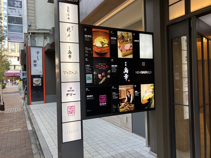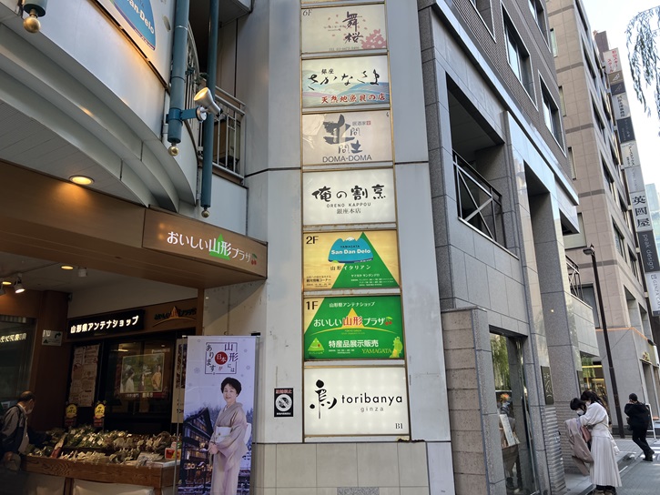 「俺のやきとり銀座九丁目」は、「俺の焼肉銀座九丁目」のお店と同じビルの路地に面した地階にあります。
