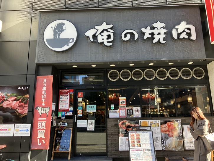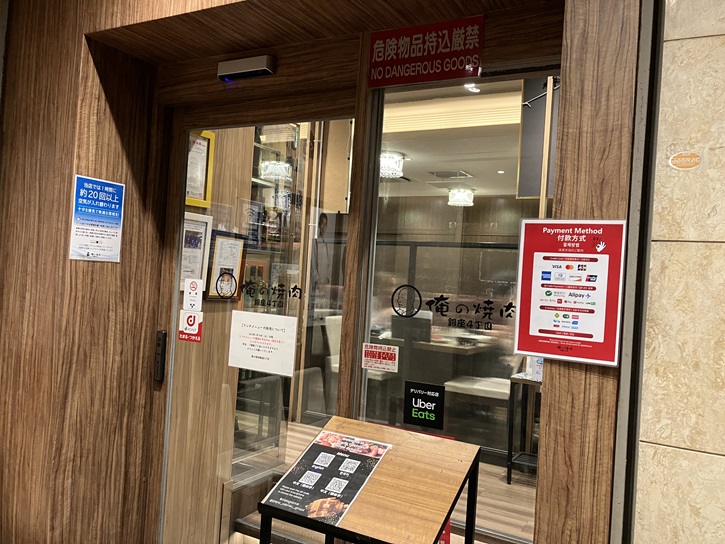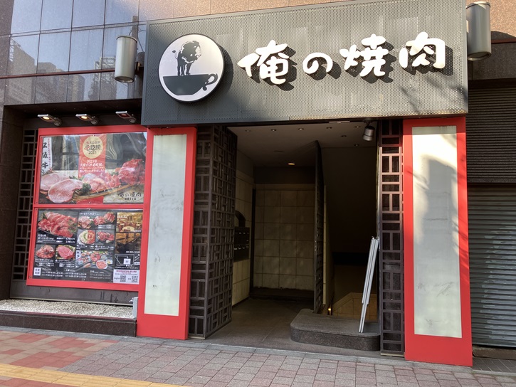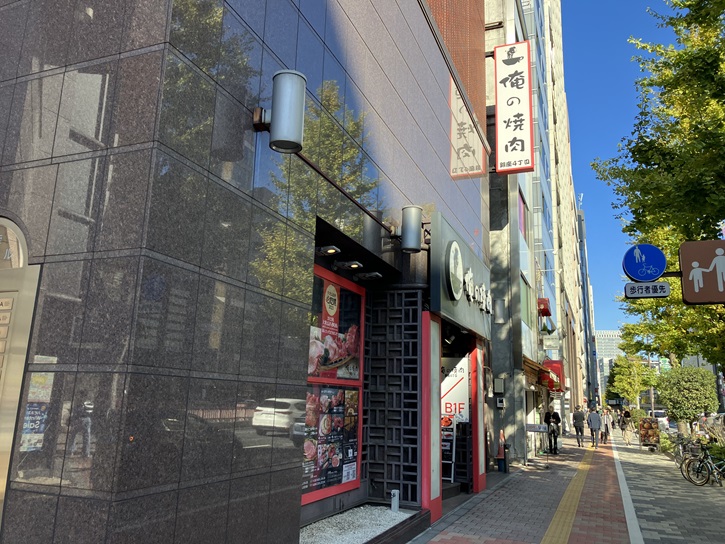 「俺の焼肉銀座四丁目」は、交差点角のビルの地階にあります。この場所には、2014年6月27日にオープンした「俺の揚子江 銀座4丁目」店がありました。俺の〜シリーズで、イタリアン・フレンチ・割烹・やきとり・焼肉・だし・そばに続く初の中華料理のお店として期待されましたが、惜しまれつつ閉店し、跡地には2017年4月1日に現在の俺の焼肉銀座四丁目が開店しました。