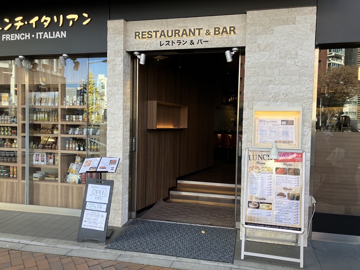 ランチメニューは定番のピザとパスタが中心ですが、20席ある1階のバー席では2階のレストラン席と同じ料理が提供されています。メインディッシュとして「牛フィレ肉とフォアグラのロッシーニ〜黒トリュフソース〜」を注文することも可能です。飲み物は勿論水ではなくワインになるでしょうけど。