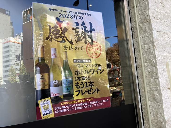 「俺のフレンチイタリアン銀座歌舞伎座前」には、お惣菜やワインを販売する独立した店舗も併設されています。年末には、予約限定ですがお節も販売されます。