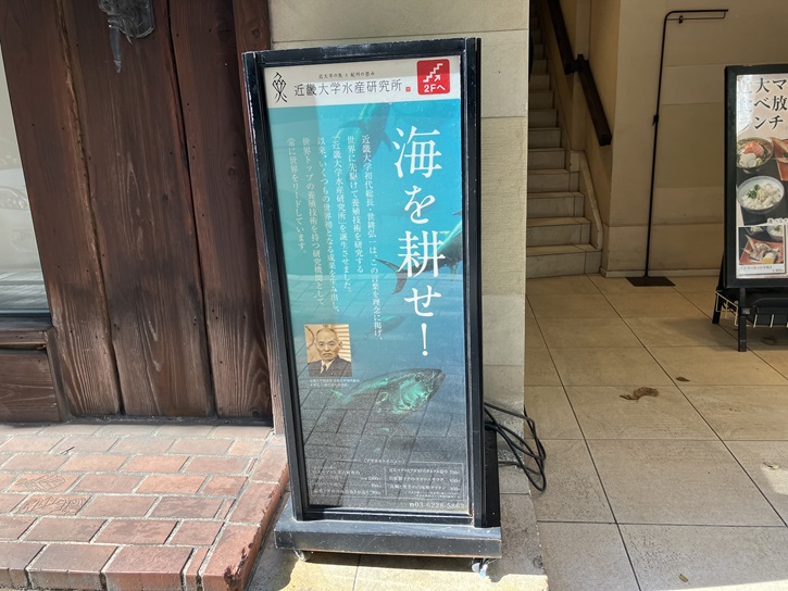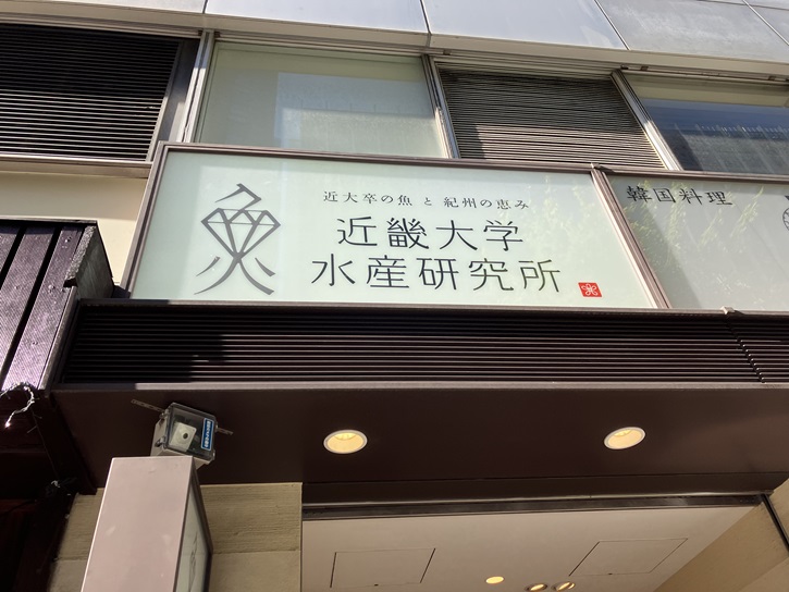 JR線の高架に沿って新橋方向に進みます。鮪の養殖で知られる近畿大学水産研究所のお店があります。