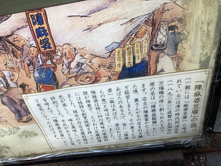 「麻婆豆腐」の名前の由来が書かれた看板が置かれています。「麻」って、「あばた」のことだったんですか!
