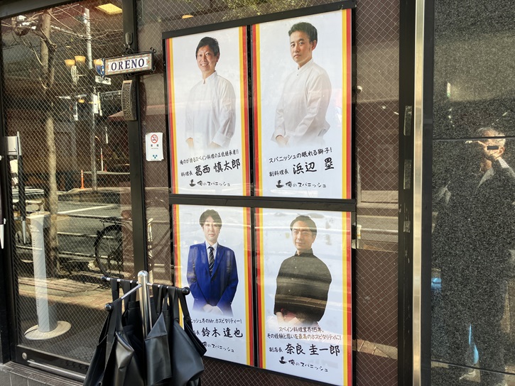 お店の入口横にはシェフの紹介ポスターが掲げられています。