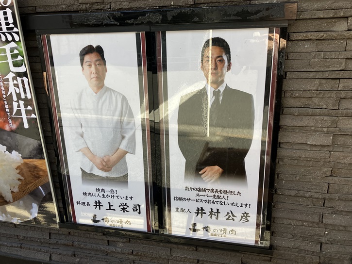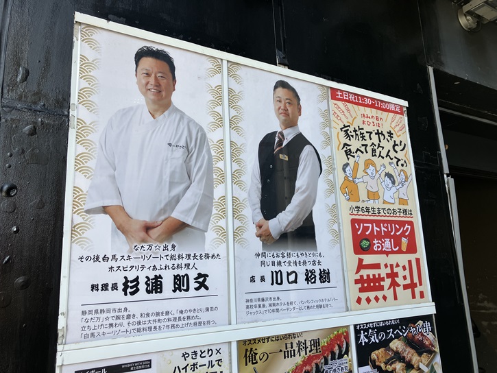 お店の入口横には料理長の紹介ポスターが掲げられています。俺の〜の叩き上げの料理人ですね。