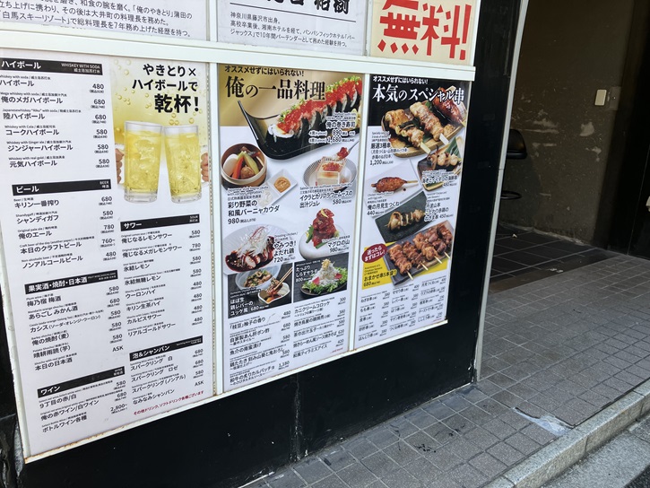 メニューには、焼き鳥だけでなく、マグロとイクラがたっぷり巻かれた「俺のやきとり」名物の俺の巻きずしやあん肝などのお料理もあります。高級居酒屋といった感じです。