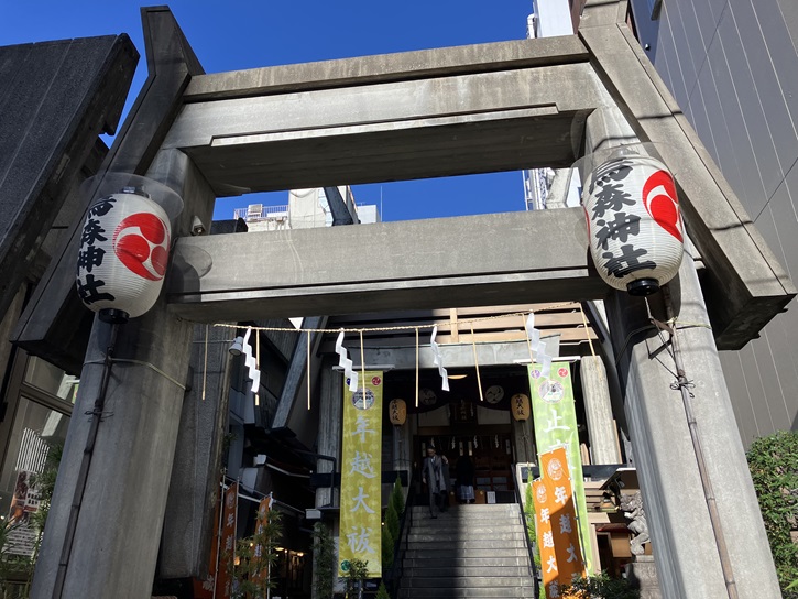 新橋駅から烏森宮脇通りに入ります。通りに面してヘンな形の鳥居が目を引く烏森神社が鎮座しています。烏森神社の創建は平安時代の940年と古く、元々この地は江戸湾を眼前に構える砂浜で、辺り一帯は松林でした。そのことからこのエリアは「枯州の森」・「空州の森」と呼ばれていたそうですが、さらにその松林には烏が多く集まって巣をつくっていたことから烏森と呼ばれるようになったとのことです。江戸時代には「柳森神社」・「椙森神社」と合わせて「江戸三森」と呼ばれるほど地域の人々の間では知られた神社で、江戸時代の稲荷ブームの際には初午の稲荷祭で賑わい、「江戸で一・二を争うものであった」といわれています。また、烏森神社の大神輿は1930年に名人と呼ばれた山本正太郎(通称だし)によって制作された「だし鉄の最高傑作」と言われ、金色に輝く神輿は通称千貫神輿と称される巨大なものだそうです。