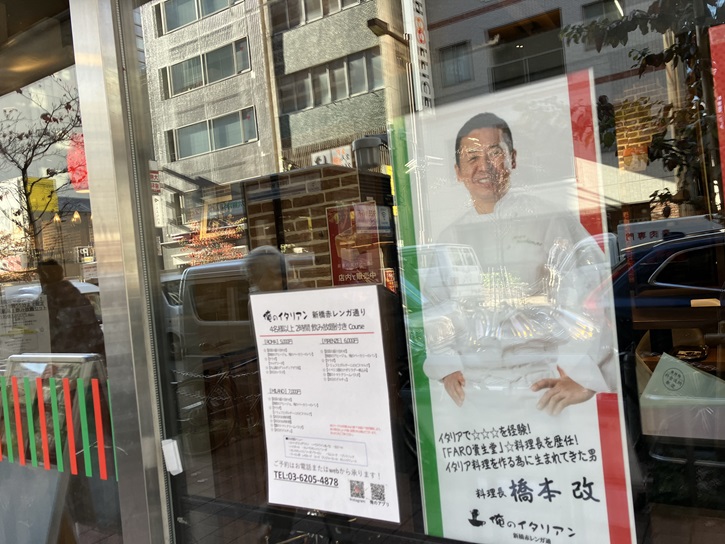 ドアで隠れてよく見えませんが、お店の入口にはシェフの紹介ポスターが掲げられています。