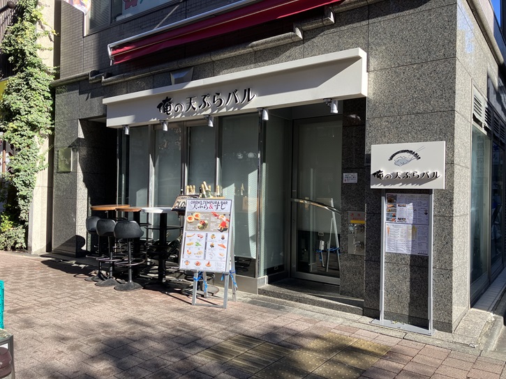 「俺のイタリアン新橋赤レンガ通」の赤レンガ通りを挟んだはす向かいに、俺の〜シリーズで都内に一店舗ある天ぷらのお店があります。最近、石塚英彦さんが運営しているYouTube「石ちゃんねる」でも紹介されたお店です。石塚さんは恵比寿にも出没していましたね。