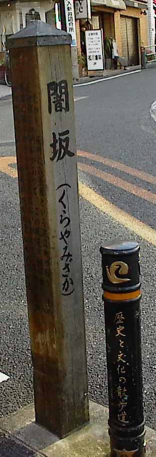 池上通りを少し行きますと、まもなく大森駅です。池上通りを歩いている時はそんなに感じませんが、大森駅の周辺には急な坂があちこちに見受けられます。見下ろすような谷間に飲食店街が連なっているところもあります。古代には今の東海道線のところまで海が迫っていたのでしょうね。大森駅のまわりは商店街になっています。何やら香ばしい匂いがしてきたと思ったら、小さなパン屋さんの軒先で焼きたてのメロンパンを販売していました。余りの香ばしさに、一個買おうかという衝動にかられましたが、さすがに一個だけでは買いづらく断念しました。あの時に買っておけば。。。と、今でも思い出しては後悔しています。大森駅前には『馬込文士村』の大きな案内図が立っています。文学オンチの私でも名前を聞いたことのある作家や随筆家・評論家の住居(跡)がキラ星の如く印されています。なるほど文士村という名前に相応しいところですね。駅を過ぎたあたりの交差点から右上に上る急な坂があります。『暗闇坂(くらやみざか)』というオドロオドロしい名前の付いた曲がりくねった急な坂です。暗闇坂の由来ですが、昔この坂の北側には八景園という庭園があり、この坂が細く曲がっていて、八景園の樹木がうっそうとおおいかかって昼間でも暗かったためにこの名前がついたといわれています。暗闇坂を登っていきますと、周囲は住宅地になります。著名な文士の旧宅は必ずしもこの道沿いにあった訳ではありませんので、結局文士の住居(跡)はひとつも見つけられませんでした。。。