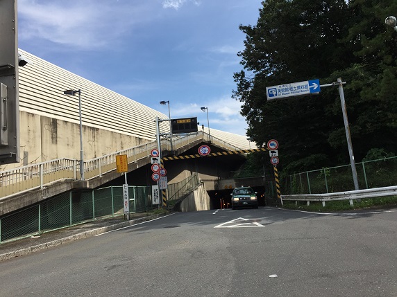高島平団地を抜けて不動通りに出ます。そのまま直進しますと首都高速池袋線の高架が目の前に聳えています。ここで右折し、高架に沿って進みます。ここでは道路の右側(北側)の歩道を歩きます。道路に沿って、左右に広大な赤塚公園が広がっています。どんどん歩いて行きますと、首都高池袋線の高架は新大宮バイパスと合流します。複雑に入り組んだ高架を抜けて赤塚公園に出るには、一旦側道に降りて歩道橋を渡るしかありません。道路の右側(北側)の歩道を歩いて来ないとこの歩道橋には出れません。