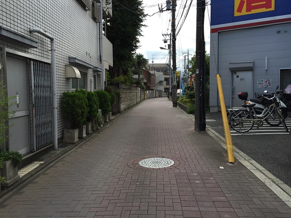 歩道橋を抜けて新大宮バイパスの反対側に出ます。ここから東京大仏通りを進みます。と言っても、東京大仏通りは狭くて歩道がありません。代わりに、歩道が現れるまで赤塚公園の中を通ります。赤塚公園には、旧赤塚城本丸跡が残されています。高台の上に開けた空き地と案内板がかろうじてその痕跡を感じさせますが、都内に残る貴重な史跡です。