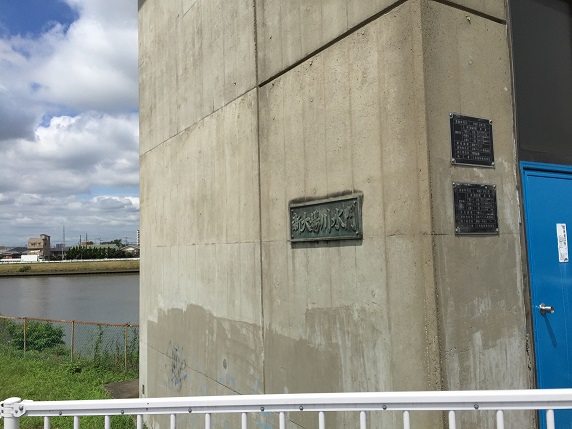 今回は「水元・柴又コース」です。先日歩いた舎人コースの終点である新大場川水門が起点になります。先ずは、東京都と埼玉県の境界を流れる大場川に沿って歩きます。新大場川水門付近には武蔵野の路の標識は何もありません。