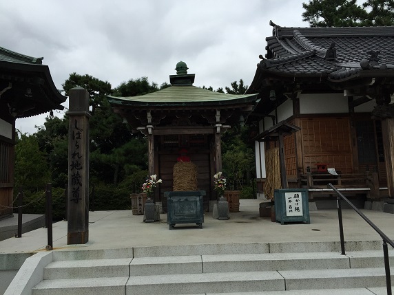 暫く単調に歩いて行きますと、遊歩道脇に「葛飾区史跡 しばられ地蔵」と書かれた旗が見えました。ここまで何も見るべきものがなかったので、遊歩道からそれて南蔵院というお寺に立ち寄ってみようと思います。しばられ地蔵は、元々は現在の墨田区吾妻橋に置かれていましたが、昭和になって当地に移転したのだそうです。境内の奥の堂の中には、首だけ出して体中をぐるぐる巻きにされたお地蔵さんが鎮座されています。塩地蔵とかもありますが、地蔵さんも大変ですな。