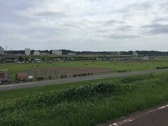 金町浄水場の隣には柴又帝釈天があり、その脇に寅さん記念館が建てられています。前回は中を見物したのですが、今回はパスします。更に歩いて行きます。江戸川の河川敷はとてつもなく広く、その敷地を使って野球場とかサッカー場、更にはゲートボール場まで設けられています。少年野球の試合があると、お母さんたちは給食に給水と大忙しです。