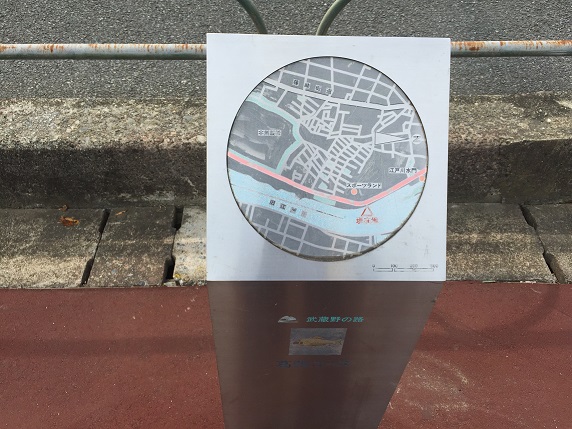 ところで、終点の乗り場近くに設置してある武蔵野の路の標識ですが、コース図のパネルが無残にも剥がされています。もはや修復されることもないでしょうから、実に残念です。