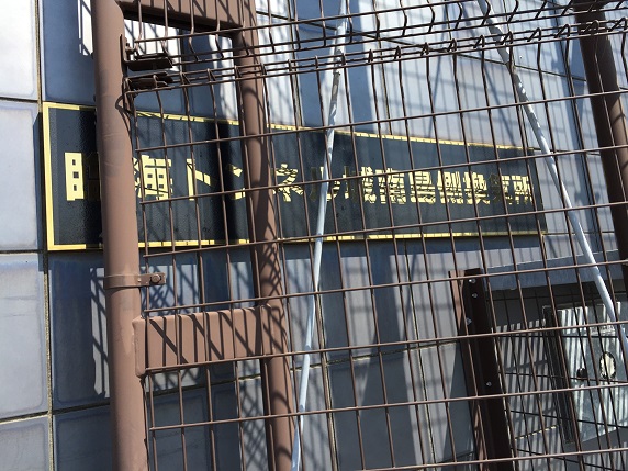 さて、コース図に従って換気所の前の広場から真っ直ぐに歩き始めます。ところが、直ぐに海浜公園のフェンスにぶつかり、出口が見つかりません。細長〜〜〜い駐車場を抜けて公園から出ます。辺りは倉庫や工場が建ち並ぶ殺風景な街並みです。城南島は夜の人口がゼロになるのではないかと思えるくらい住宅が見あたりません。でも、なんだかかぐわしいアルコールの香りが鼻をくすぐります。建物を見上げますと、壁には「日酒販」と書かれています。建物の内外にはお酒のケースが山積みされ、それぞれに仕分けられてトラックに積み込まれています。アルコールの香に満ちているのは空瓶も回収しているからなのでしょうか?