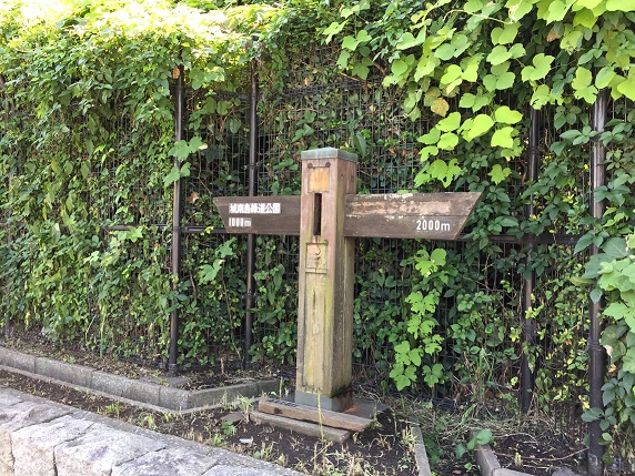 野鳥公園東交差点脇に、コース初めての標識板が立っていました。片方の腕の文字は消え、時の流れを感じます。更に進んだところに、これまた初めてのコースの案内板が立っていました。10年前に撮った写真は不鮮明でしたので、ここでコース全体の正確な道程を地図に書き記します。新呑川から環八と交差する区間が古いままになっています。
