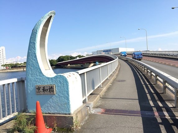 大井・羽田コースでは多くの橋を渡ります。最初は城南野鳥橋です。珍しい名前ですが、橋を渡った先にある東京港野鳥公園にちなんで名づけられたのでしょう。