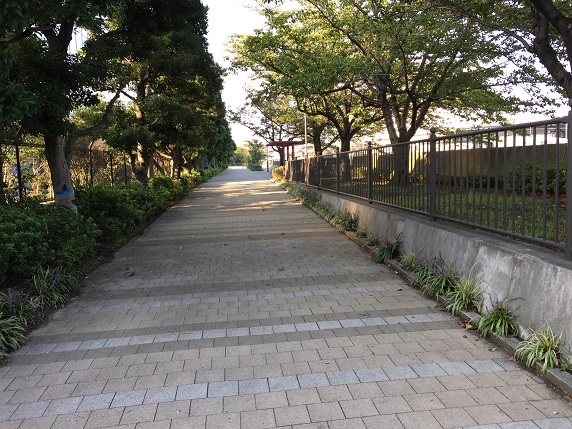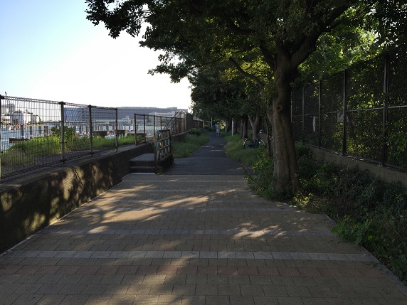 コースは羽田クロノゲートの東側の交差点から奧に入ります。あまり意味はないようですが、制定当初のコースになっていた海老取川に面した緑道の端っこを見せるためかもしれません。これはこれでなかなかに魅力的な緑道ではあるのですが。