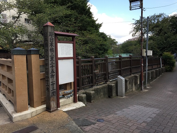 この橋は板橋と称し、板橋という地名はこの板橋に由来するといわれています。板橋の名称は、すでに鎌倉から室町時代にかけて書かれた古書の中に見えますが、江戸時代になると宿場の名となり、明治22年に市町村制が施行されると町名となりました。そして昭和7年に東京市が拡大して板橋区が誕生した時も板橋の名称が採用されました。板橋宿は、南の滝野川村境から北の前の村境まで20町9間(約2.2km)の長さがあり、この橋から京よりを上宿と称し、江戸よりを仲宿、平尾宿と称し、三宿を総称して板橋宿と呼びました。板橋宿の中心は本陣や問屋場、旅籠が軒を並べる仲宿でしたが、江戸時代の地誌「江戸名所絵図」の挿絵から、この橋周辺も非常に賑やかだったことがうかがえます。江戸時代の板橋は、太鼓状の木製の橋で長さは9間(16.2m)、幅3間(5.4m)ありました。少なくとも寛政10年(1798年)と天保年間の二度修復が行われたことが分かっています。近代に入ると、大正9年に新しい橋が架けかえられましたが、自動車の普及に対応するため、昭和7年に早くもコンクリートの橋に架け替えられました。現在の橋は昭和47年に石神井川の改修工事の際、新しく架けかえられたものです。