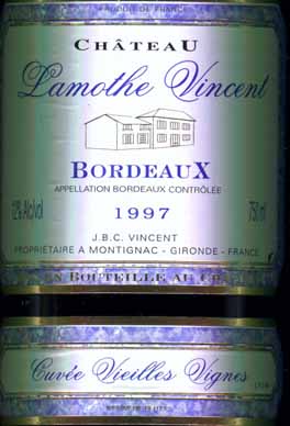 - (赤) フランス: CHATEAU LAMOTHE VINCENT CUVEE VIEILLES VIGNES (1997)