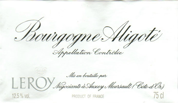 - (白) フランス: BOURGOGNE ALIGOTE (2002)