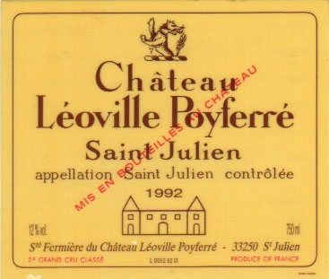 - (赤) フランス: CHATEAU LEOVILLE POYFERRE SAINT JULIEN (1992)