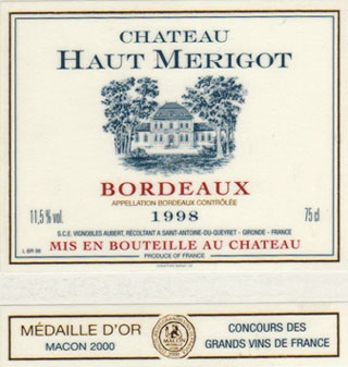 - (赤) フランス: CHATEAU HAUT MERIGOT BORDEAUX (1998)