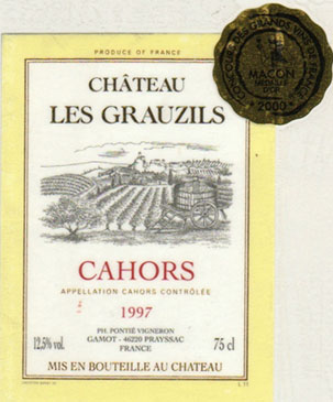 - (赤) フランス: CHATEAU LES GRAUZILS CAHORS (1997)