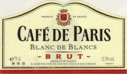 - (スパークリング) フランス: CAFE DE PARIS BLANC DE BLANCS BRUT