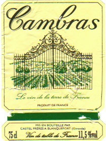 - 『カステル カンブラス』は、フランスNo.1ワイン・メーカーのカステル・フレール社のフルーティで爽やかな味わいでやや辛口の白ワインです。
