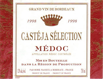 - (赤) フランス: CASTEJA SELECTION MEDOC (1998)
