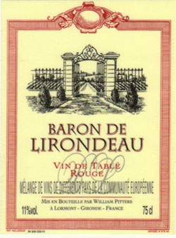 - 『バロン・ド・リロンドー』は、フランス売上No.1のボルドーワインである、ウィリアムピターズ社のテーブルワインです。苺の香りと清涼感のある新鮮な果実味が特徴で、ポークソテーやチキンのトマト煮込みなどのお料理に合います。ミディアムボディの赤ワインで、14℃ー16℃が飲み頃です。