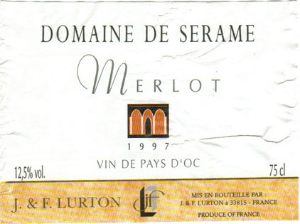 - (赤) フランス: DOMAINE DE SERAME MERLOT (1997)