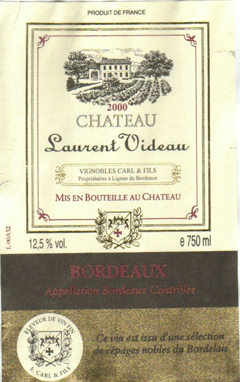 - (赤) フランス: CHATEAU LAURENT VIDEAU (2000)