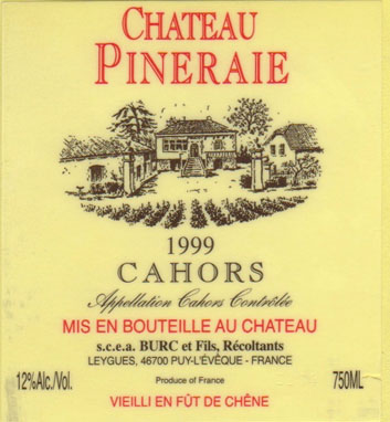 - (赤) フランス: CHATEAU PINERAIE CAHORS (1999)
