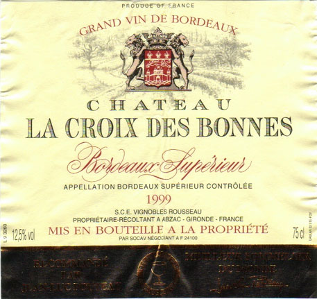 - (赤) フランス: CHATEAU LA CROIX DES BONNES (1999)