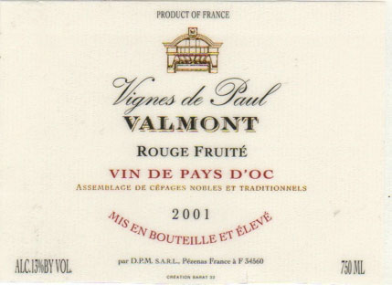 - (赤) フランス: VIGNES DE PAUL VALMONT ROUGE (2001)