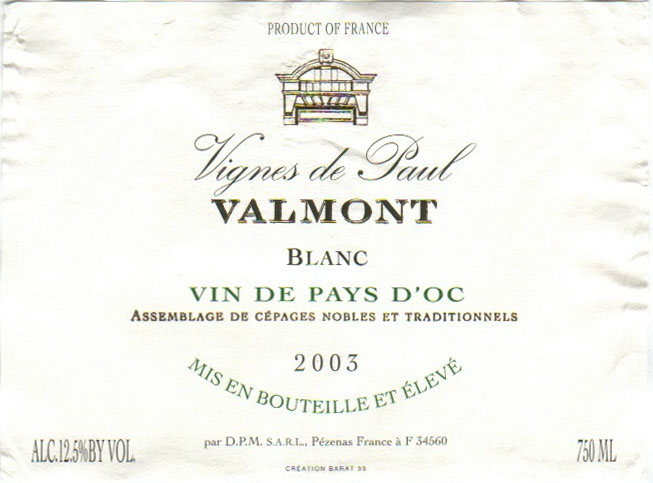 - (白) フランス: VIGNES DE PAUL VALMONT BLANC VIN DE PAYS D'OC (2003)