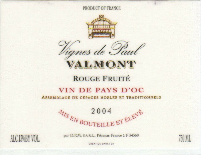 - (赤) フランス: VIGNES DE PAUL VALMONT ROUGE VIN DE PAYS D'OC (2004)