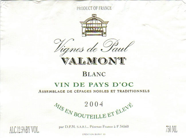 - (白) フランス: VIGNES DE PAUL VALMONT BLANC VIN DE PAYS D'OC (2004)